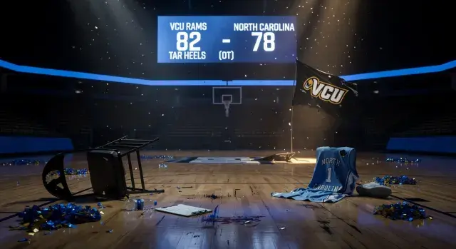 No. 11 seed VCU Rams defeated No. 6 seed North Carolina Tar Heels 82-78 in overtime during the first round of the 2026 NCAA Division I men's basketball tournament on March 19, 2026, at Bon Secours